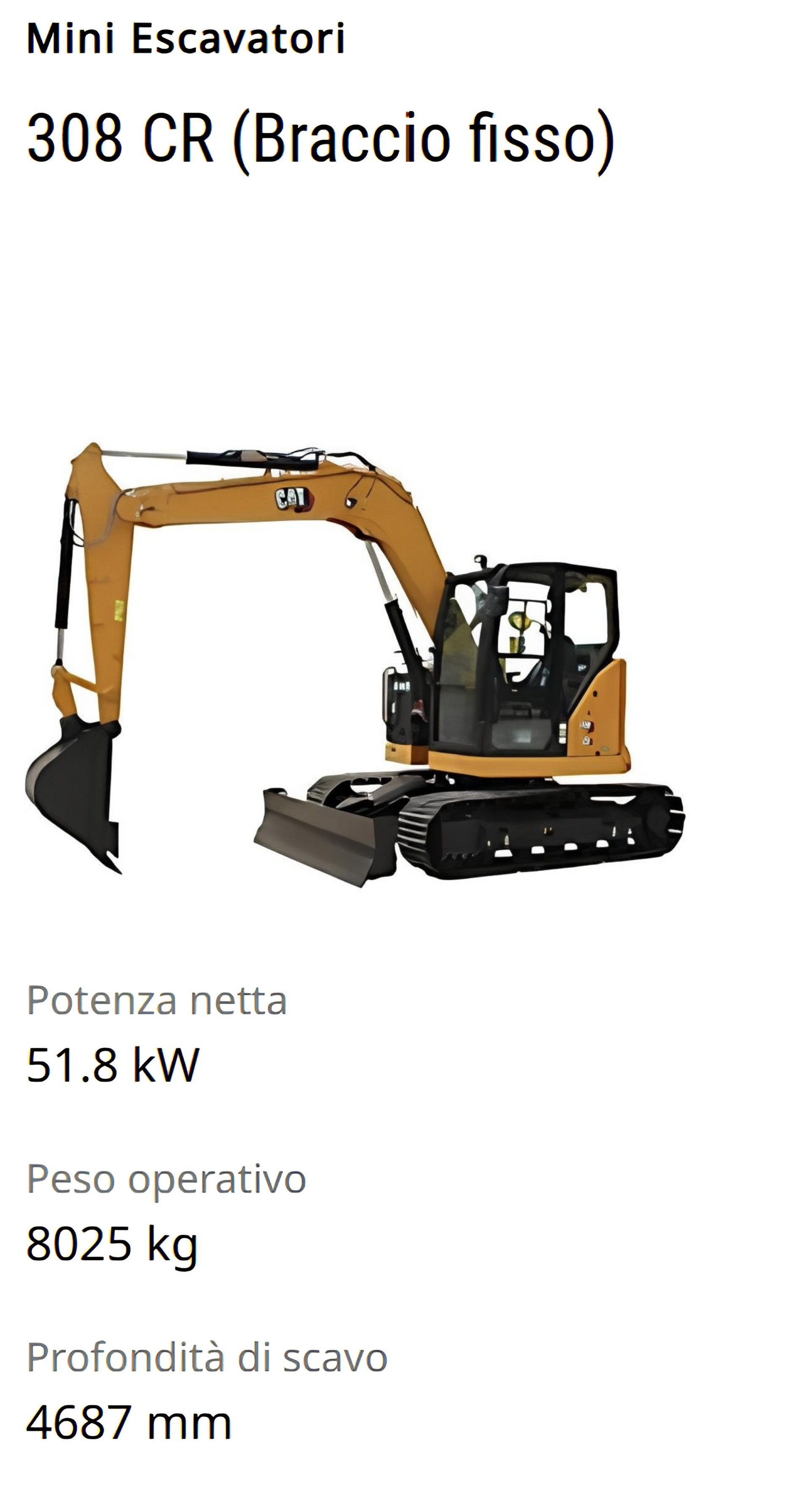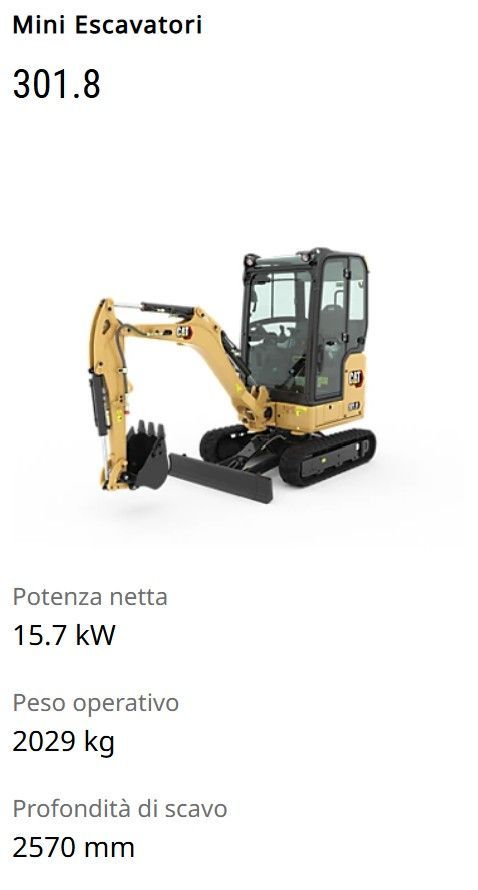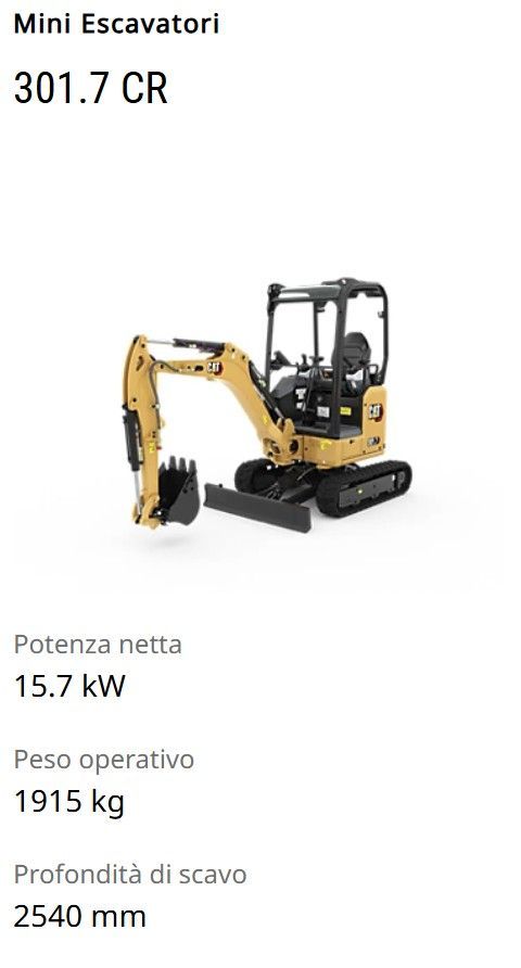 • Alte Prestazioni (7-10 ton): Inclusi i modelli 306 CR, 308 CR, e i top di gamma CAT 309 e CAT 310.